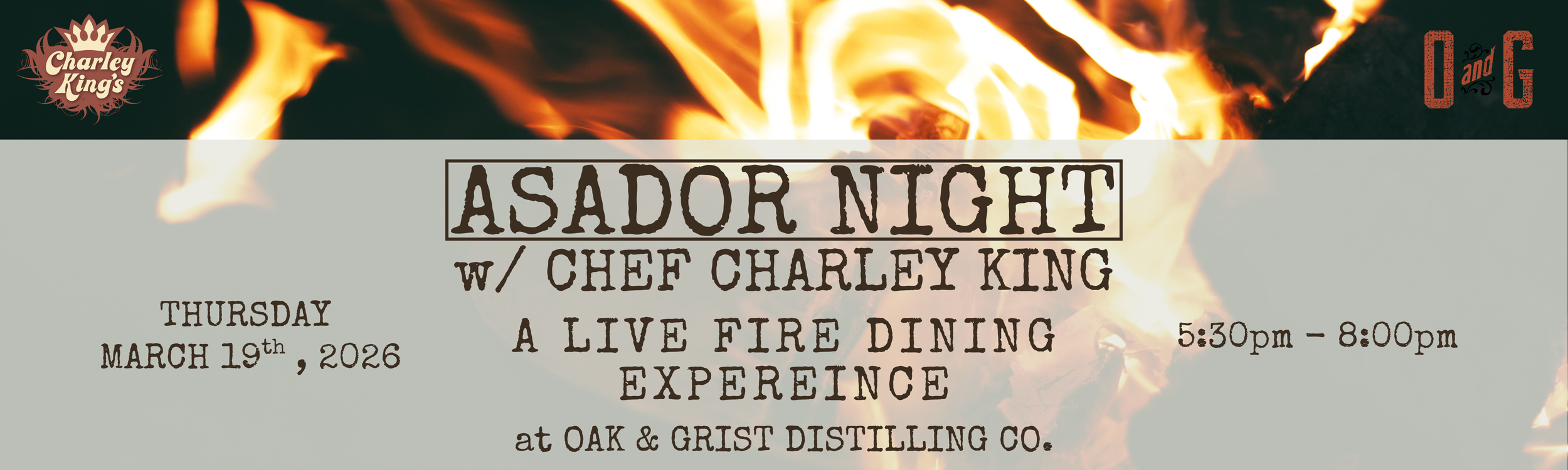 If you are not familiar with Asador, it’s a South American open fire cooking method. Charley King will be blending his Jamaican roots and recipes with Asador for an immersive dining experience at the distillery.